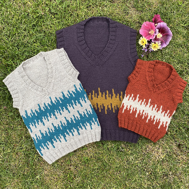 Two PDFs are available for knitting the vest flat and seamed, or in the round.