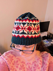 This hat is a beanie with the colorwork from the 2026 Team USA Winter Games uniforms, specificly the hats they will wear during the opening ceremony and some snow sports. They have similar, but slightly different, motifs on their sweaters.