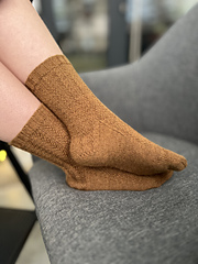 The Heatherbone texture is best highlighted in solid, tweed, or softly melanged yarns, making these socks versatile and timeless.