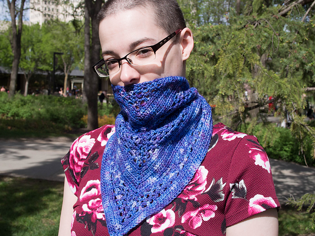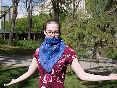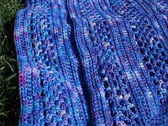 Oree Shoth is blind but she can see the colours of magic. No-nonsense and stubborn, she's my favourite character in *Broken Kingdoms.* The colours in Hawthorne reminded me of the descriptions of magic in N.K. Jemisin's books and this shawl was the result.