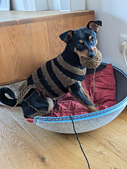 Instagram @meijuknits #meijuknits #stripeDOGsweater