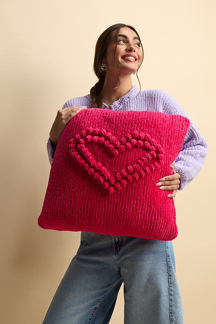Cuddle up with a touch of handmade love. The Lovebug cushion cover, knit in sumptous Bella Chenille, brings cozy charm and playful romance to your space. Its plush texture and raised heart motif make it the perfect accent for Valentine’s Day, or anytime you want to spread a little warmth. Whether gifted to someone special or crafted just for you, this cushion is a soft reminder that love is best when it’s handmade.