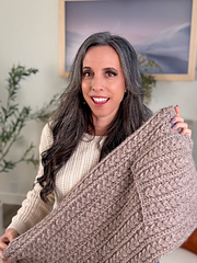 Once the shawl body is compleit'sit’s blocked to allow the stitches to relax and settle beautifully. The matching pockets are crocheted separately using the same Wheat Stitch™ repeat, ensuring a cohesive look. After blocking, the pockets are positioned at each end of the shawl and sewn along the sides and bottom—leaving the top edge open for a cozy, functional pocket you'll actually use.