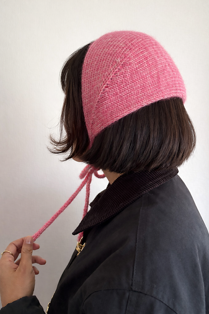 El Bonnet Lucia se teje en plano. Se comienza con un i-cord para formar los lazos; luego se trabajan los aumentos. Una vez alcanzado el ancho deseado, se continúa en punto jersey. Finalmente, se realizan las disminuciones y se termina con un i-cord para formar el otro lazo.