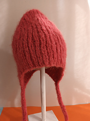 The hat features a three-panel construction consisting of two textured side panels and a central front panel, all worked in 1x1 rib. The defining feature is the diagonal shaping created by synchronized increases and decreases. These lines travel toward the crown, creating a "pointed" or "mitred" effect. Because of the specific stitch distribution, the hat provides a snug fit that remains comfortable and elastic.
