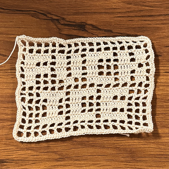 There is an embedded link to a blog page on how to filet crochet, which I highly recommend if this is your first time trying filet crochet or if you need a refresher.