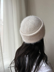 The white BRUSHED_LOOP_HAT is worked with Merino color Cream and Soft Silk Mohair color Snowflake from Knitting for Olive.