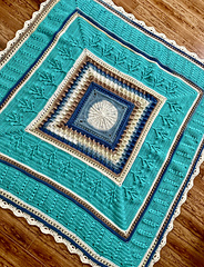 A pretty square baby blanket crochet pattern created from the center out. Pattern uses different stitch patterns to create the story of the blanket.