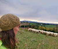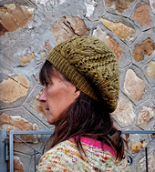 The Pero beret is knit from the bottom up. The Italian Tubular cast on gives a neat polished look to the edge. After the ribbed brim, the body of the hat is worked in a lace pattern that is inspired by the wild pear leaves.