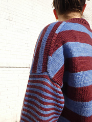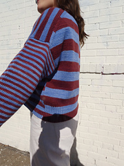 The Rayas Pullover is a boxy, oversized sweater with bold stripes and modern construction. The back and front panels are knit flat in pieces from the top down and seamed while the sleeves are picked up and worked in the round. The four different colorwork charts provided allow for creative customization across the back, front, sleeves, and collar. Mix and match charts and color combinations for the ultimate "choose your own adventure" striped sweater!