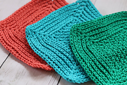 Yarn: Bernat Handicrafter Cotton by Yarnspirations ® (84 yds/77 m; 1.75 oz/50g; 100% cotton; (4) worsted weight). You will need approximately 1 ball per dishcloth.