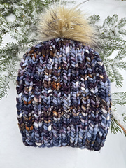The DefiKnitly Tasteful beanie uses a simple technique to create a beautiful design and texture. It is one size only but easily adjustable for smaller or larger.