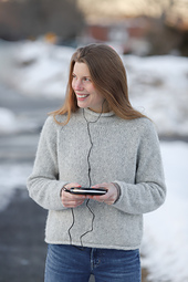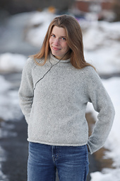 Sweater is worked from the top down, flat to start and then joined in the round at front when neckline shaping is completed.