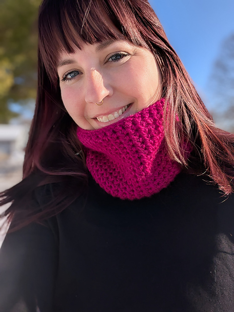 The Keystone Cowl is a modern, cozy crochet accessory designed by Rachel of Leaping Loops for The Hook Haven. This easy-level pattern is a quick, satisfying project that’s perfect for confident beginners and experienced crocheters looking for a relaxing make.