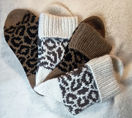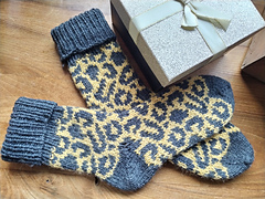 Elles sont travaillées de la pointe vers la cheville et comportent un talon en rangs raccourcis et un motif de jacquard sur toute la chaussette.