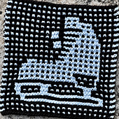 With the Winter Games soon to start, this pattern celebrates figure skating. Open skate is a time when everyone is welcome to play on the rink. Knit with your team colors! The cloth is knit using mosaic garter stitch. Just one strand of color works every two rows while the other strand rests at the edge. Gauge and dimensions are provided with a DK-weight cotton yarn. Choose colors that contrast well. Try your camera’s “black & white” setting to look at your yarns in grayscale and check the contrast between your selection(s). Both positive and negative charts are included in the pattern.