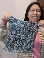 Gauge: Before blocking, 8 rows = 4” tall. Stitch gauge is difficult to measure in a rippled pattern, and is not critical for this design.