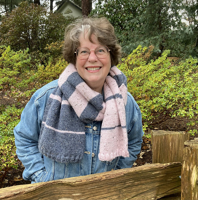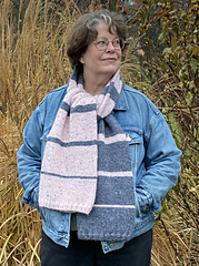 The Diminishing Returns Scarf is a cosy, squishy scarf worked in the round. The fun 2-colour striping sequence gradually shifts the stripe width ratio creating a graphic fade from the first colour to the second. I did not come up with the stripe sequence in the scarf pattern; I've seen it on shawls, bags and sweaters over the years. It's a fun, intuitive and beginner-friendly stripe pattern that practically knits itself. It's great worked in high-contrast colours but would also be lovely in more subtly contrasting shades.