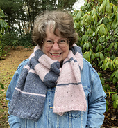 I love a luxury fibre, handed-dyed yarn as much as the next knitter. Sometimes however, the price-point might be out of reach, or maybe I just want a quick and inexpensive project on my needles. The Diminishing Returns Scarf was designed with that in mind. I used cost-effective, easy to find yarns for both samples.