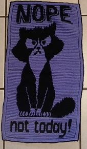 This pattern with a grumpy cat is made to crochet in Overlay mosaic crochet technique.