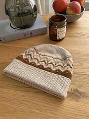 You can knit a plain one color version or add the Color Peaks colorwork motif in Fair Isle style, worked either from a chart or from written instructions. The colorwork uses simple repeats and is suitable for adventurous beginners.