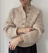 Take care not to overstretch your garment whilst it is wet as this can cause the Reverse Half Fisherman’s rib stitch to grow irreversibly; the growth amount may vary depending on the yarn used. It is recommended to gently steam block this garment.