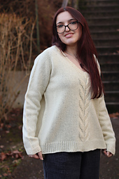 On the front, a wide asymmetric cable catches the light and adds a touch of originality to this cosy sweater, playing between modernity and tradition.