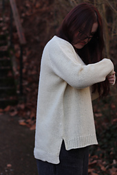 Knit in the round, soft and bouncy Gilliatt yarn by De Rerum Natura, it is the kind of sweater you pull on without a second thought, to warm up and feel instantly at ease.