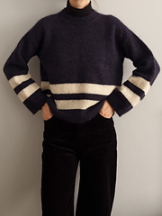 **Mc:** 4 (4, 4, 5) (5, 5, 6) (6, 6, 7) skeins of Biches & Bûches Le Petit Lambswool (100% lambswool, 50 g/ 1.76 oz = approx. 248 m/ 270 yds) in the colourway Dark Blue Black.