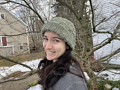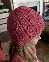 Zigzagging columns of twisted stitch cables travel up this highly textural hat.