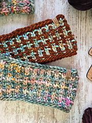 This headband can be knit with any Super Bulky yarn. Yarn options are available on my website. www.northroadknits.com