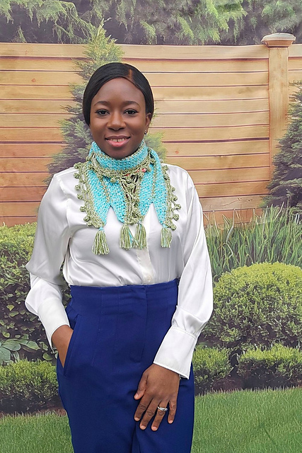 The Moss Crochet Tiny Scarf Pattern is a lightweight, textured design perfect for layering and everyday wear.