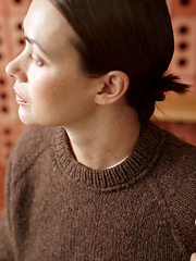 The sweater is worked top-down in the round. First, the folded neckband is worked in 1 x 1 Rib and finished with a welt. The increases of the compound raglan are worked together with the back and front neck shaping using German Short Rows, first over each shoulder separately to shape the back neck, then over both shoulders and the back to shape the front neck. When the raglan is finished, the body and sleeves are separated. Side decreases are worked to shape the body before working another welt and finishing the hem with 1 x 1 Rib. Stitches are picked up for the sleeves and sleeve shaping is done using decreases. The sleeves are finished with a welt and 1 x 1 Rib.