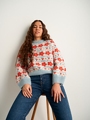 Æbleblomst (Danish for “apple flower”) is a vibrant colourwork sweater inspired by those magical spring months when the apple trees blossom. It is worked from the bottom up and has a relaxed fit.