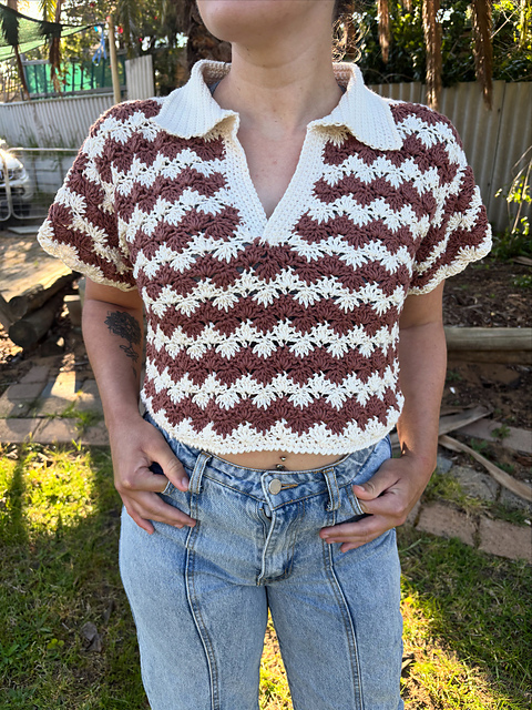 The crochet top pattern uses roughly 800m of 8ply (light worsted or DK) weight cotton for the sample size (UK 8). You will need more for bigger sizes, you will also need a 3.5mm crochet hook.