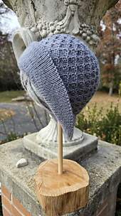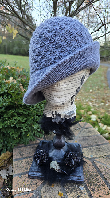 This design is named for Jesper Fahey from the Six of Crows duology by Leigh Bardugo. He is a charming and quick-witted sharpshooter with a penchant for gambling. He often wears a cocky smile and is known for his flashy style and love of guns. The textured pattern reminds me of clubs or spades from a deck of cards. Incorporating into a cloche just felt right for Jesper’s style, especially when the crown ends up like a bullseye!