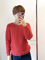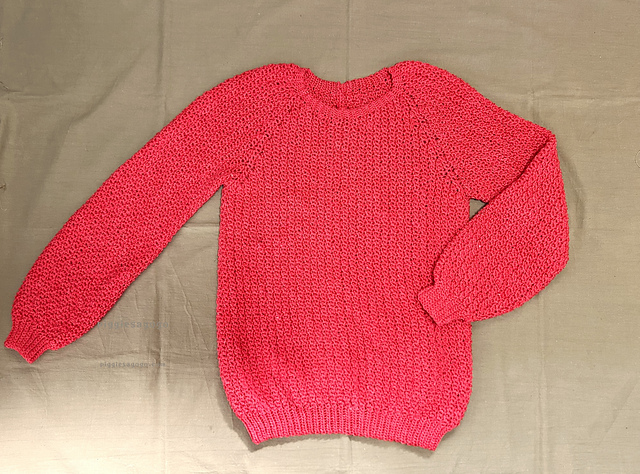 This is a seamless pattern. It starts at the center of back panel, extends out to create the sleeves, continues to the front panel, and works all the way around back to the beginning. You can complete the entire project without cutting your yarn even once.
