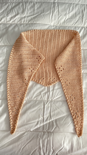Este es un chal triangular a ganchillo que se teje de lado a lado haciendo aumentos y disminuciones en el mismo lado.