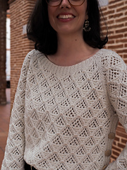 **On the picture:** size XS/S with 10 cm of positive ease, made with Summer Softness from Lana Grossa, color n°1.