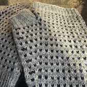 Made for a trip to Seoul, these fingerless mittens were designed to fit a larger male hand and to have an elongated wrist so that the cuff of your sweatshirt doesn’t sit directly on top of the ribbing. My personal preference is to have neutral ease in mittens, and these are designed to sit on the hand, rather than strangle it.