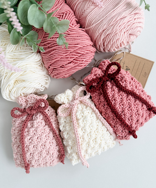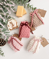 The Winterberry Soap Saver is a charming, giftable crochet pouch featuring our signature Winterberry stitch for a soft, bubbly texture. Designed to hold a bar of soap, this versatile pouch can also be used for gift cards, small treats, or handmade Valentine’s Day gifts. Rated easy, this pattern builds on foundational skills and introduces simple technique upgrades, making it a great project for confident beginners. Finished with a sweet tie closure and decorative top edge, a full step-by-step video tutorial and printable gift tags are included.