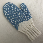 The design mimics a softly falling snow. The mittens both use the same easy to read chart. The yarn I chose is Berroco Vintage DK. It's a wool blend for warmth, but also washable. I would dry these flat.