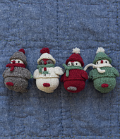 In total the one Winter Bird will use about 20 grams of sport weight yarn combining several colors. Amounts may vary slightly. Make sure you have a little extra on-hand.