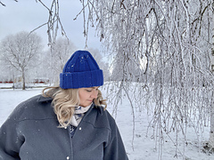 Meet Lumi (snow in Finnish), a soft and spacious sister to the Lovi Hat. Where Lovi is crisp and structured, Lumi leans into ease. It’s an airy, relaxed beanie with a gentle slouch, designed to feel light on the head while still offering warmth. Worked at an Aran weight gauge from the bottom up, Lumi features a soft, wide rib texture. Designed in five sizes, it’s easy to customize for your preferred fit and level of slouch. The double or triple layer brim adds warmth and stability without compromising the relaxed feel. Simple, cozy, and effortlessly wearable, Lumi is a warm winter staple you’ll reach for again and again.
