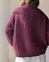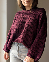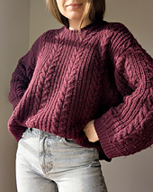 The Cozycottagesweater is knitted seamlessly top down and worn oversized for a casual and comfy fit. The sweater is knitted with a back yoke that is continued in the sleeves. The pattern combination of cables and half brioche stitch make this one a cozy statement piece that will keep you warm and is a match to almost everything. The sweater has a pretty crew neck and the neckband is worked in single rib pattern.