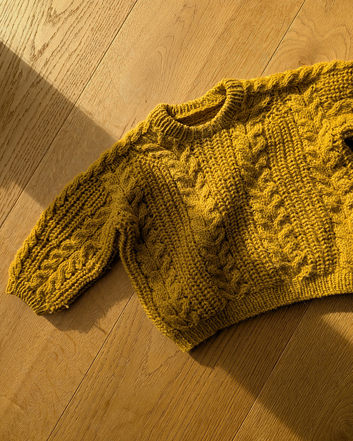 The Cozycottagesweater is knitted seamlessly top down and worn oversized for a casual and comfy fit. The sweater is knitted with a back yoke that is continued in the sleeves. The pattern combination of cables and half brioche stitch make this one a cozy statement piece that will keep you warm and is a match to almost everything. The sweater has a pretty crew neck and the neckband is worked in single rib pattern.
