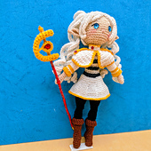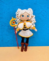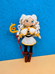 This pattern is inspired by a popular fantasy anime elf mage character and is fully fan-made, with an original crochet design adapted for amigurumi style.