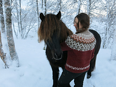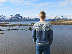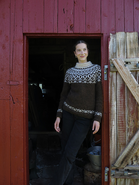 Eyjagenseren kommer i to versjoner, tofarget eller flerfarget. Genseren strikkes nedenfra og opp i dobbel tråd Plötulopi fra Istex, eller i enkel tråd Vams fra Rauma Garn. Genseren kan om ønskelig strikkes med en liten forlengelse i nakken, og damemodellen kan strikkes med enn innsving i midjen for bedre passform. Forlengelsen i nakken vil lettere markere hva som er bak og frem på genseren. Gensere i ull vil forme seg etter kroppen ved bruk, og ved å bruke genseren samme vei hver gang, sørger du for at passformen blir best mulig. Genseren kan strikkes med kort eller høy hals, garnmengden oppgitt i oppskriften holder til høy hals.