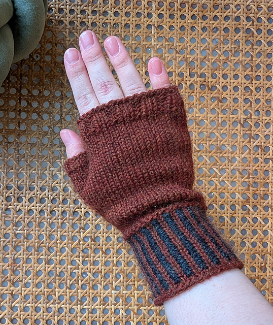 Hello! I created these mitts to keep my hands warm while working with clients at a free, no/low barrier clinic in my area. It is excellent for using up scrap and works up very quickly with size 3 circs and DK yarn.