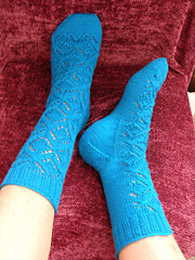 <big>These socks are a simple knit, with the main challenge being a few five stitch cables. The back of the leg is worked in stockinette stitch.</big>